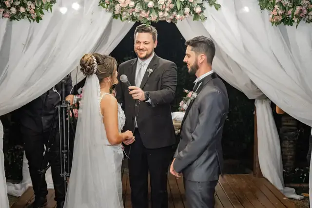Desde o início, eu e a Duda sabíamos que o Rodolfo seria a escolha perfeita para celebrar nosso casamento. Ele realiza uma cerimônia personalizada, que é construída através de uma entrevista rápida antes do grande dia. Foram momentos emocionantes, com palavras que nos fizeram chorar, e momentos de alegria, com suas palavras cheias de humor. Recomendo o Rodolfo como celebrante, pois ele tornou nosso dia ainda mais especial com sua dedicação e talento.